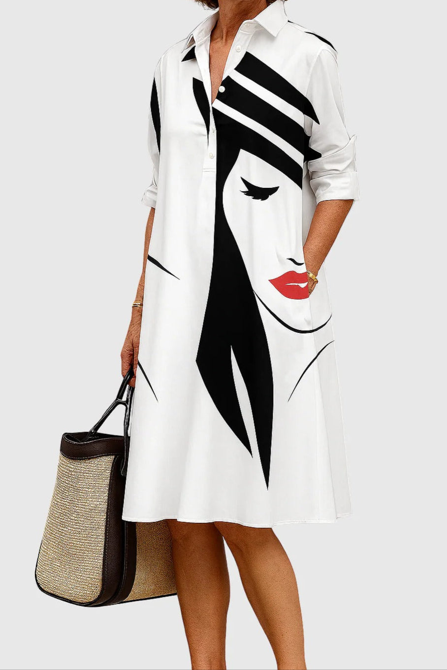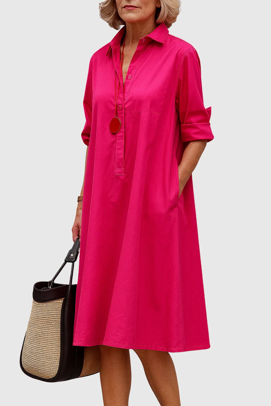 MIREILLE – Elegant Medium-Length Shirt Dress with a Relaxed and Sophisticated Silhouette